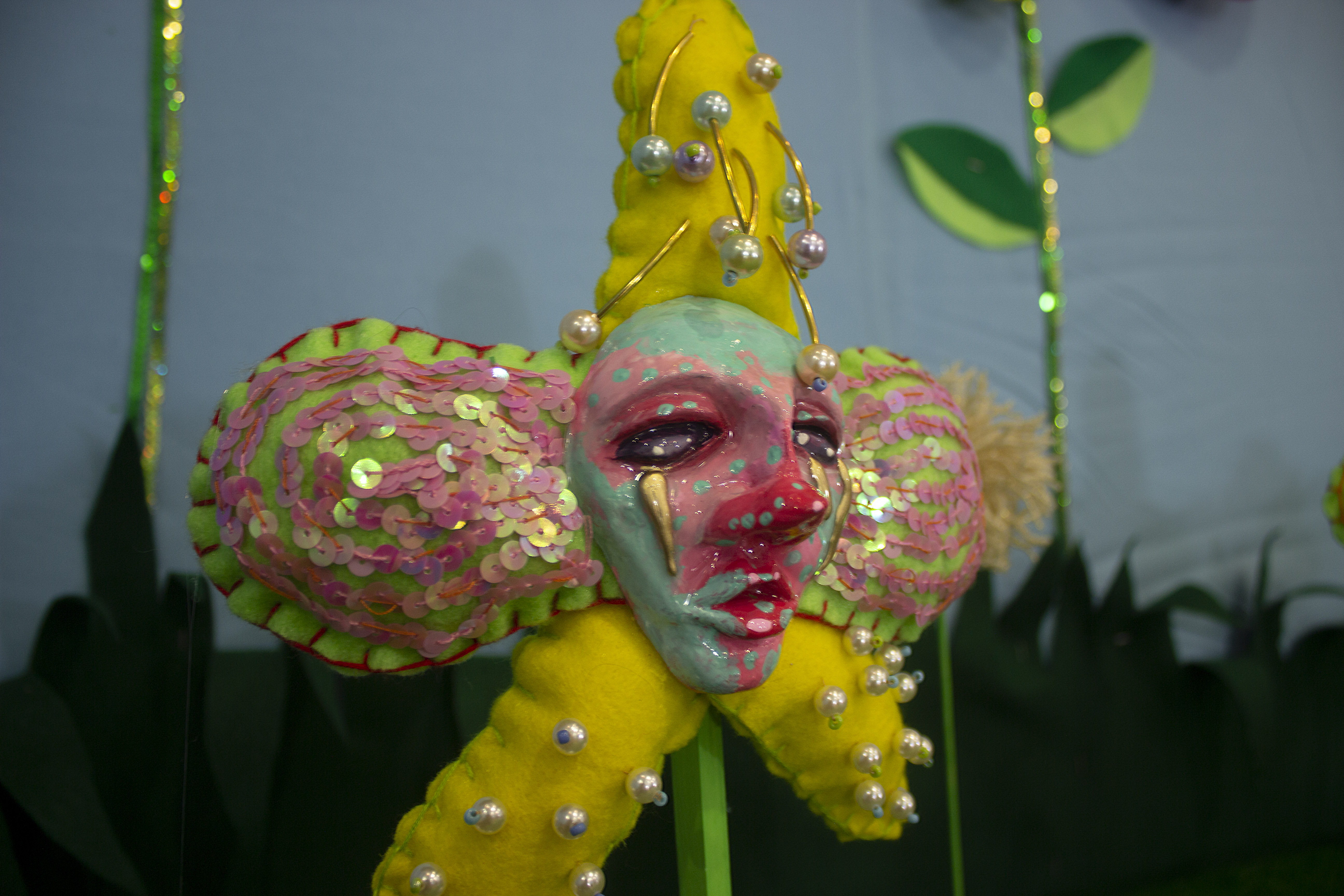 The exhibit also featured a wearable piece, a carnival cut-out, a large mask and a painting.